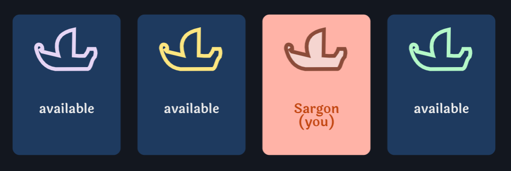 - transitions to the next game phase. Only available to the game owner throughout the Color Selection and Specialist Drafting phases.