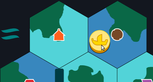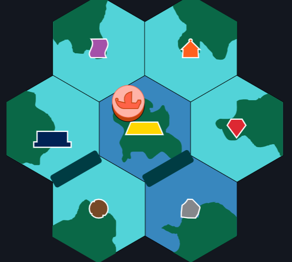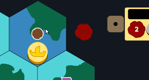 Upon starting, your ship will appear in the map's center zone as a disc token in your chosen color. The token is draggable and it is used to indicate your current location on the map. It's actual position is irrelevant as long as it is within the zone's hexagonal boundaries.