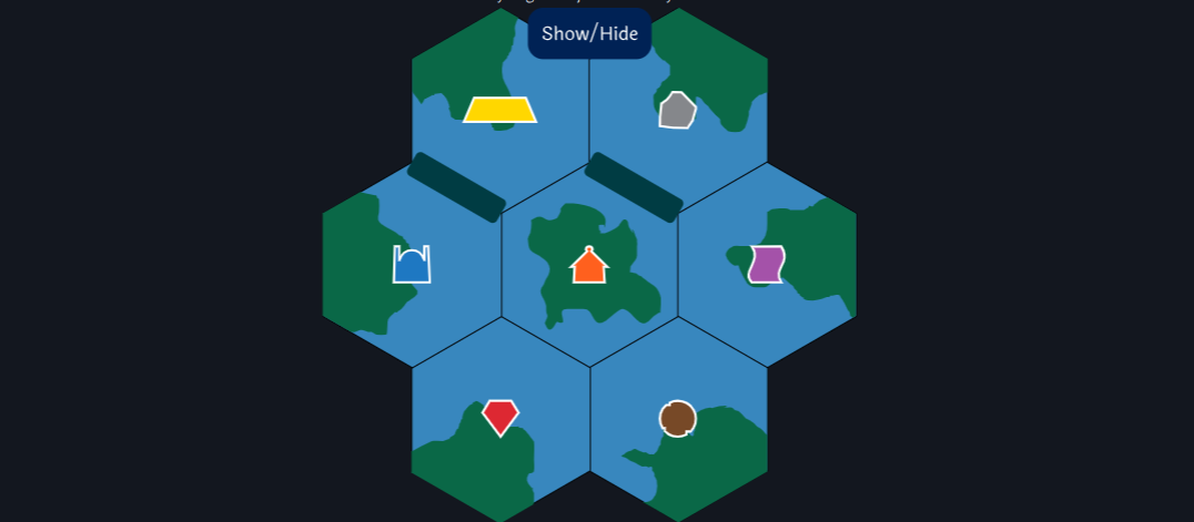 Clicking the Show/Hide label will hide the panel and reveal the game's locations and barriers placement. It's useful to examine the layout before choosing your specialist.